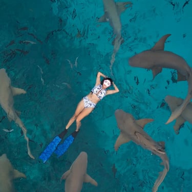 在清澈見底的海水中,與溫和的鯨鯊、魔鬼魚、護士鯊以及五彩斑斕的珊瑚礁和魚群共游。